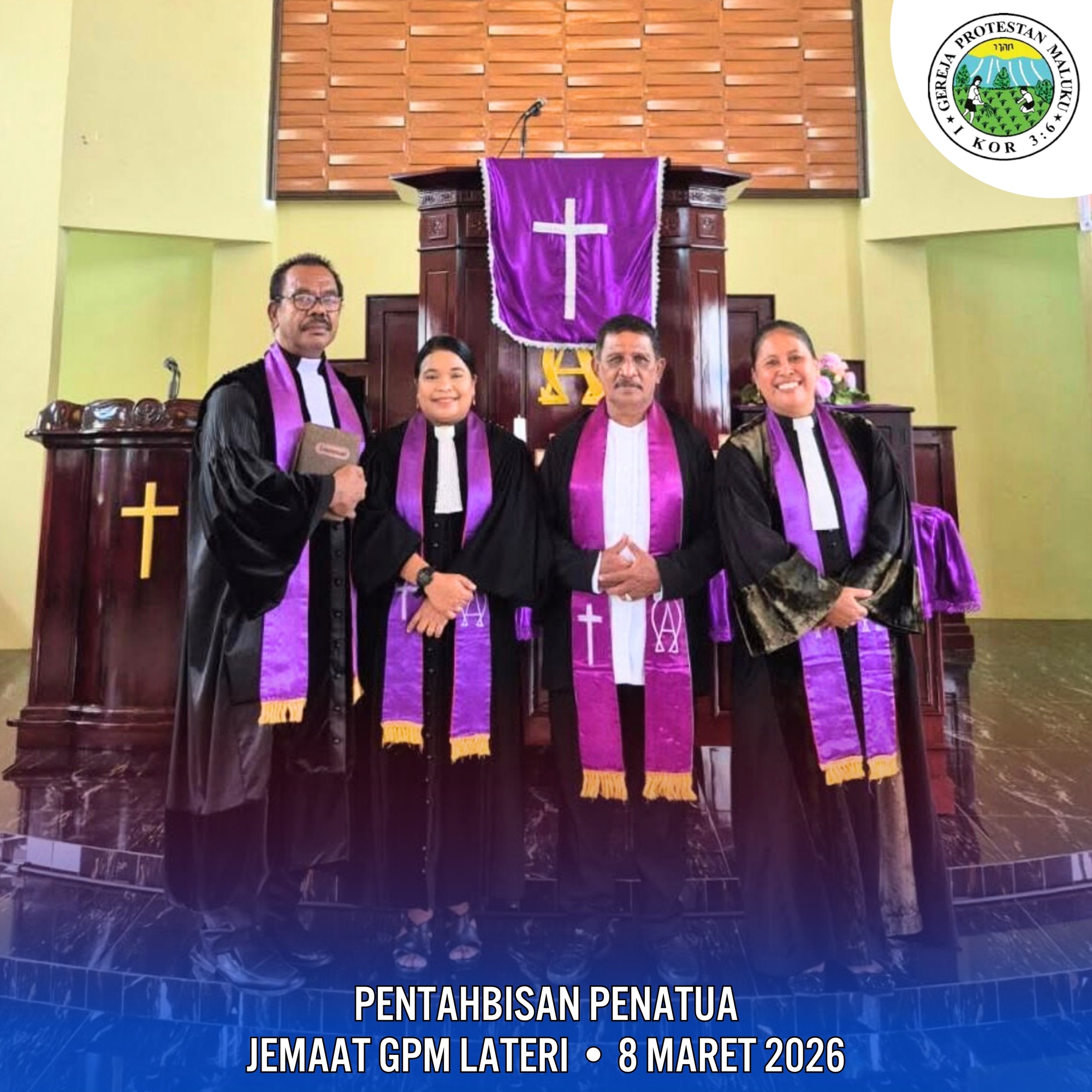 Pada hari Minggu, 8 Maret 2026 dalam kebaktian Minggu, Jemaat GPM Lateri melaksanakan salah satu kegiatan yang sangat bermakna, yaitu Pentahbisan Penatua Jemaat GPM Lateri, Pnt. Gustaf Amana yang ditahbiskan untuk menggantikan Pnt. T. Amana yang merupakan isteri dari Pnt. Gustaf Amana yang berpulang ke pangkuan Tuhan Yesus sang pemilik kehidupan dalam masa tugas dan tanggung jawab pelayanan sebagai Majelis Jemaat GPM Lateri periode 2025/2030 yang adalah sekondus (Penatua) dari Sektor Sion.
